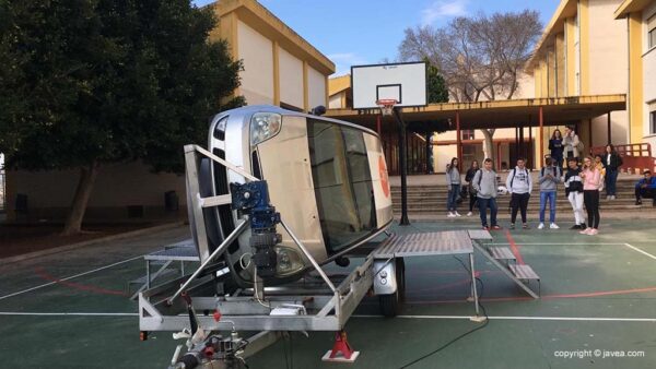 Стенд осуществляет имитацию бокового опрокидывания транспортного средства, путем проворота и фиксации положений опрокидывания при углах в диапазонах от 0 до 3600, позволяющий понять пользователю находясь за органами управления автомобиля или на месте пассажира, обязательно в пристегнутом ремнями безопасности каково находиться в транспортном средстве, попавшем в ДТП. Это позволит осознать необходимость использования ремней безопасности, а также основные практические правила — как выбраться из него.